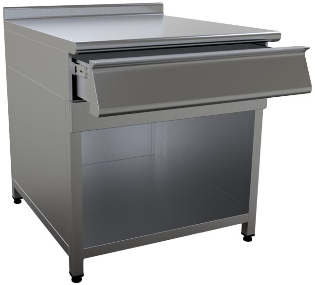 Полузакрытый нейтральный модуль Кобор N9-8CB предназначен для использования в составе тепловой линии в качестве дополнительного места для раскатки теста, обработки ингредиентов для приготовления блюд, установки оборудования и приборов, хранения продуктов, не требующих специального температурного режима, посуды и кухонных принадлежностей. Модуль оснащен выдвижным ящиком, сплошной полкой и регулируемыми по высоте ножками. Корпус выполнен из нержавеющей стали AISI 430, каркас - из профильной трубы 40х40 мм.
