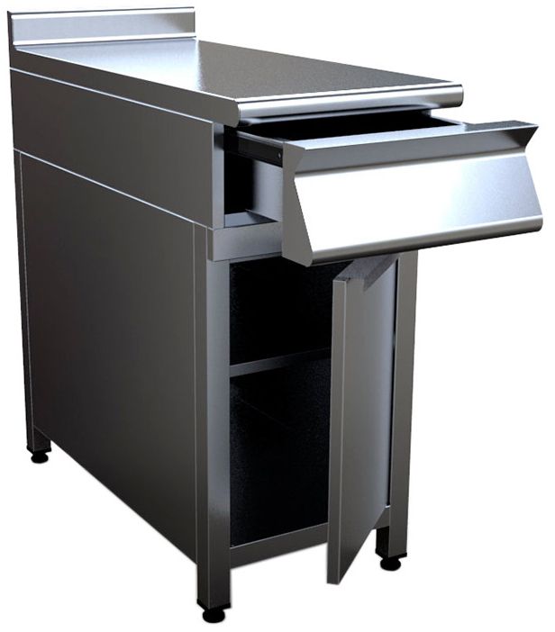 Закрытый нейтральный модуль Кобор N9-8EB предназначен для использования в составе тепловой линии в качестве дополнительного места для раскатки теста, обработки ингредиентов для приготовления блюд, установки оборудования и приборов. Модуль оснащен выдвижным ящиком, сплошной полкой, распашной дверцей и регулируемыми по высоте ножками. Корпус выполнен из нержавеющей стали AISI 430, каркас - из профильной трубы 40х40 мм.