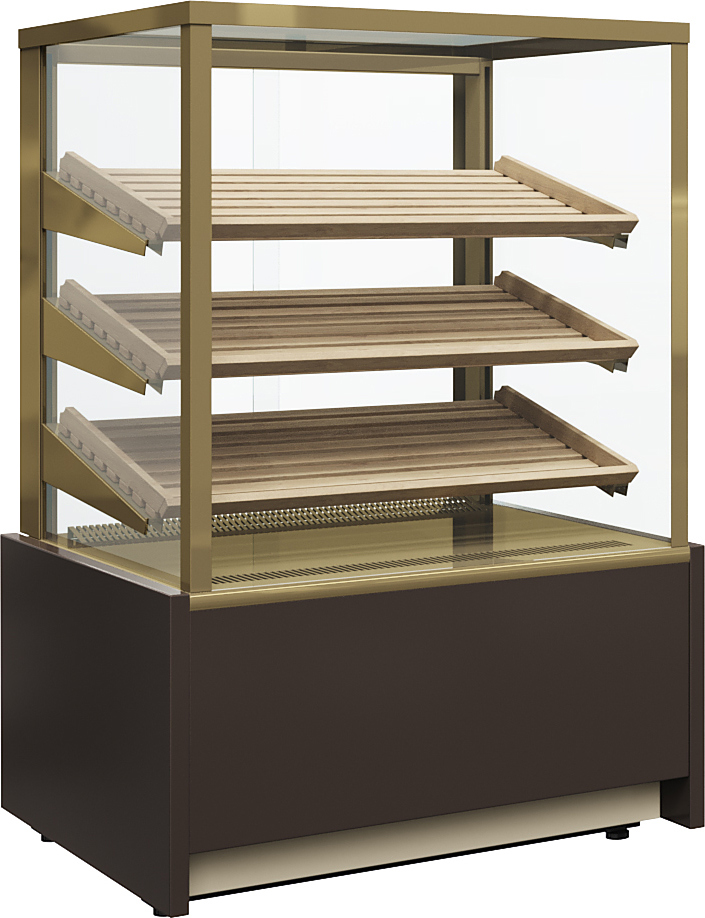 Хлебная витрина Carboma KC70 N 0,9-2 LIGHT (Сube) используется на предприятиях общественного питания и торговли для демонстрации и кратковременного хранения хлебобулочных изделий. Модель оснащена боковым остеклением, 3 наклонными деревянными полками и регулируемыми ножками высотой от 30 до 50 мм. Корпус выполнен из окрашенной стали с ППУ-изоляцией, раздвижные задние створки - из оргстекла.
