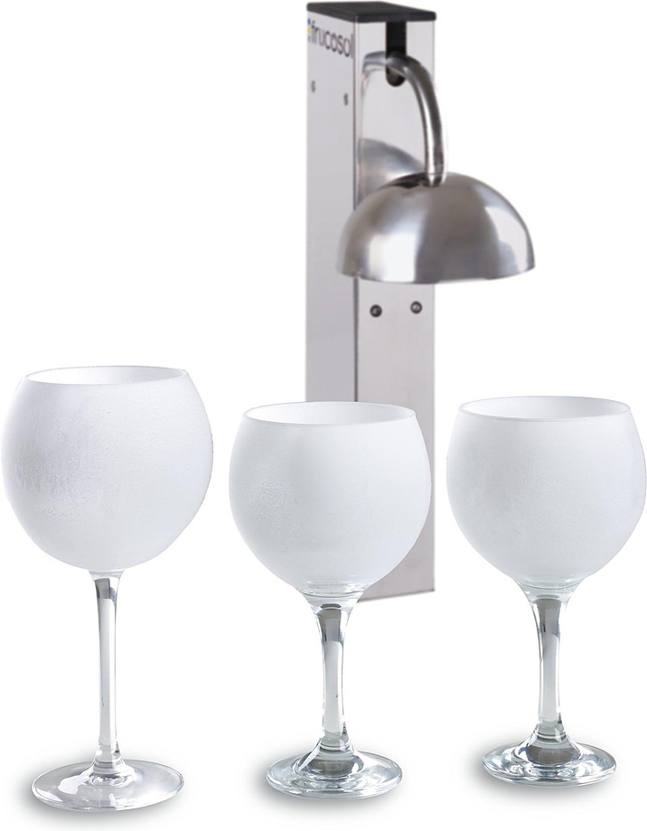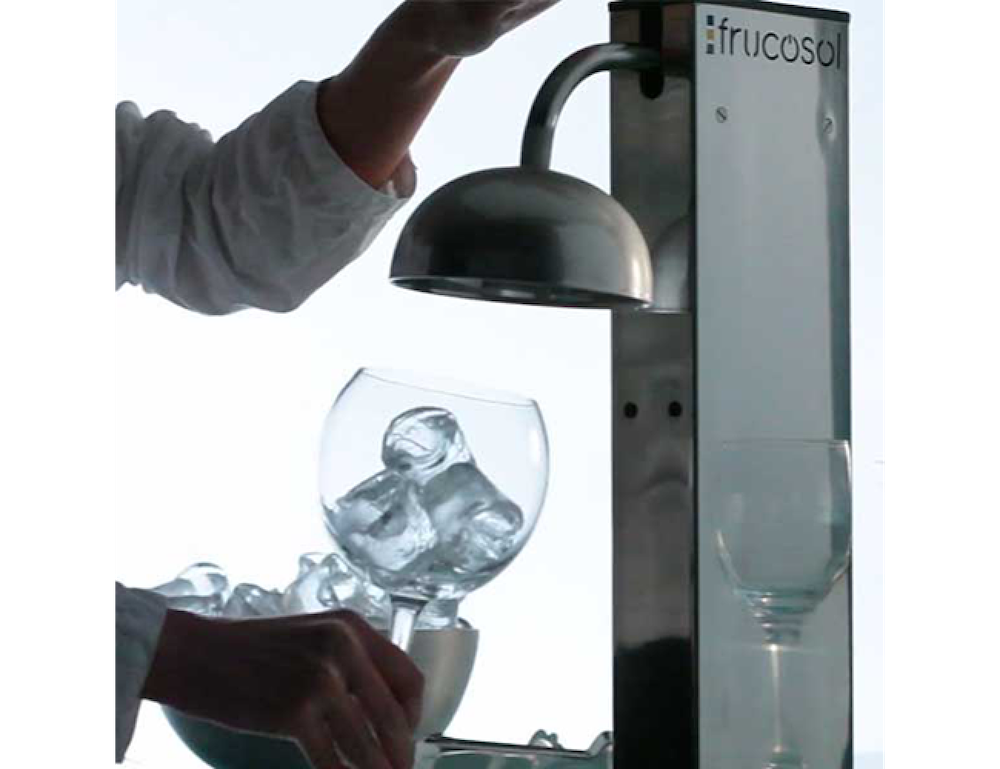 Frucosol GF1000 предназначается для использования на предприятиях общественного питания и торговли для стерилизации и охлаждения бокалов, фужеров, рюмок, чашек и прочей посуды. Процесс заморозки бокала происходит прямо на глазах у посетителя, за несколько секунд бокал покрывается тонким слоем льда. Лёд испаряется медленно, при этом вода не разбавляет напиток. Очень эффектно выглядит подача бокалов шампанского, вина и коктейлей. Так как в процессе используется углекислый газ, аппарат на высоком уровне стерилизует посуду и удаляет запахи.