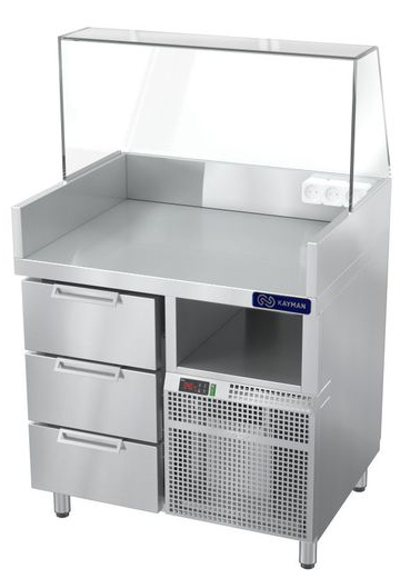 Станция для бургеров и хот-догов KAYMAN СП-БХ-900-02-ЛБ А используется на предприятиях общественного питания, торговли и пищевых для производствах с целью комплексного оснащения места для приготовления и продажи хот-догов и бургеров, а также хранения охлажденных полуфабрикатов, начинок, соусов и хлебобулочных изделий. Возможность установки на столешницу комбинированного гриля КГЭ-7-Н А, КГЭ-6-Н А, КГЭ-7-УС А, гриля контактного ГКЭ-1-Р-Ч А, ГКЭ-1-Р А, ГКЭ-1-Г А, ГКЭ-1-2Г А или гриля роликового ГР-1-5 А с подставкой ПГР-1-5 А. Материал станции - нержавеющая сталь.