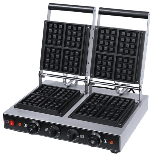 Вафельница Hualian HWB-2S используется для выпечки бельгийских вафель на предприятиях общественного питания, торговли и пищевых производствах. Модель оснащена электромеханическим управлением, таймером, термостатом, плавной регулировкой температуры и устойчивыми ножками. Материал рабочей поверхности - чугун с тефлоновым покрытием, материал корпуса - высококачественная нержавеющая сталь.