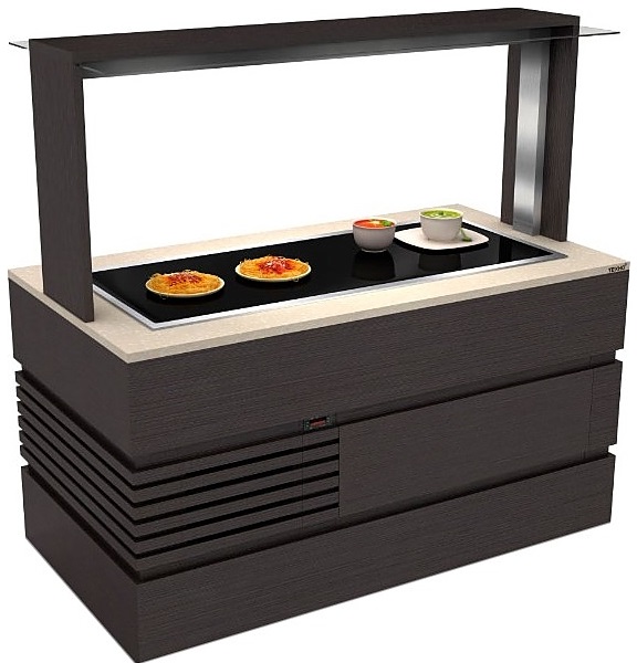 Техно-ТТ БПС-122/1616 используется на предприятиях общественного питания и торговли для выкладки, подогрева и раздачи горячих блюд. Каркас - оцинкованная сталь, фасад выполнен из шпона и МДФ, столешница изготовлена из искусственного камня. В модели предусмотрена закрытая полка с подсветкой и ящик.