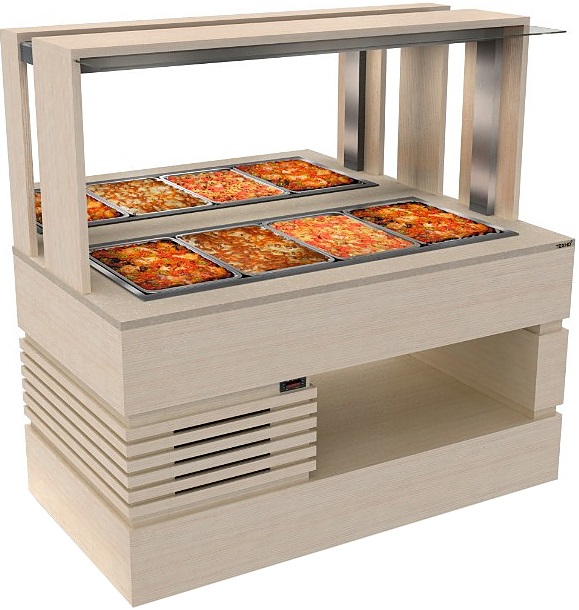 Техно-ТТ БМВ-223/1286 используется на предприятиях общественного питания и торговли для выкладки, хранения и раздачи продуктов. Каркас - оцинкованная сталь, фасад выполнен из шпона и МДФ, столешница изготовлена из искусственного камня. В модели предусмотрен ящик.