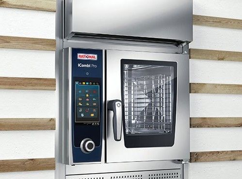 КомплектRational для встраивания пароконвектомата Rational iCombi Pro XS и CombiMaster Plus XS в зону с демонстрацией приготовления; включает в себя облицовку самого пароконветкомата Rational XS и вытяжного зонта UltraVent XS из нержавеющей стали.