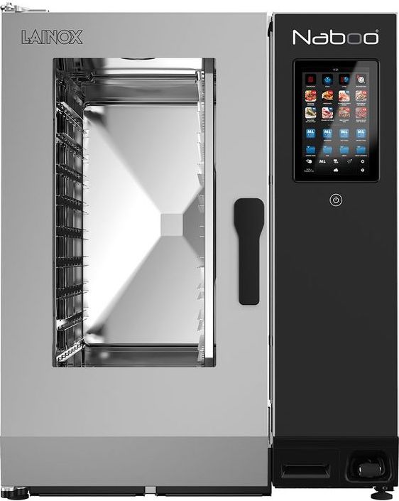 Пароконвектомат Lainox NABOO 5.0 NAE101B+OB101E предназначается для приготовления широкого спектра блюд и полуфабрикатов, а также выпечки изделий из теста на предприятиях общественного питания, торговли и пищевых производствах. Сенсорное управление. Пароконвектомат оснащен вентилятором с 6 скоростями и автореверсом, 4 точечным термощупом, системой автоматической мойки LCS и креплением к вытяжному зонту. Материал корпуса - нержавеющая сталь AISI 304.
