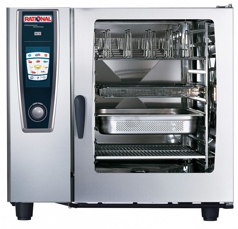 Пароконвектомат Rational SCC 102G 5 Senses серии SelfCookingCenter предназначен для приготовления блюд путём жарки, тушения или варения на предприятиях общественного питания и торговли. Такое оборудование может заменить плиту, жарочный и духовой шкаф, конвекционную печь, опрокидывающуюся сковороду, пищеварочный котел и др. Модель оснащена цветным 8,5 дюймовым TFT-монитором, сенсорным экраном с самообъясняющими символами.