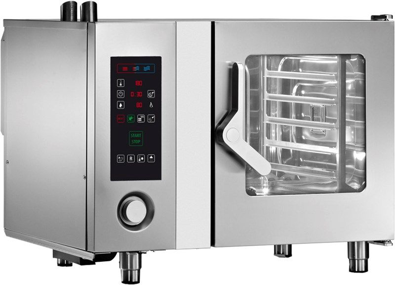 Пароконвектомат Angelo Po FX61G1 предназначен для приготовления различных блюд методом обработки паром и горячим воздухом на предприятиях общественного питания и торговли. Такое оборудование может заменить плиту, жарочный и духовой шкаф, конвекционную печь, опрокидывающуюся сковороду, пищеварочный котел и др. Благодаря специальным технологиям запах приготовляемой пищи не распространяется в помещениях.