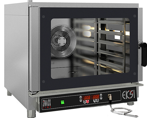 Пароконвектомат EKSI ESL 051GD серии Snack Line предназначен для приготовления различных блюд, выпечки хлебобулочных и кондитерских изделий на предприятиях пищевой промышленности, общественного питания и торговли. Модель оснащена программируемой панелью управления, термощупом и односкоростным вентилятором. Скругленные углы камеры позволяют легко чистить оборудование. Корпус выполнен из нержавеющей стали.