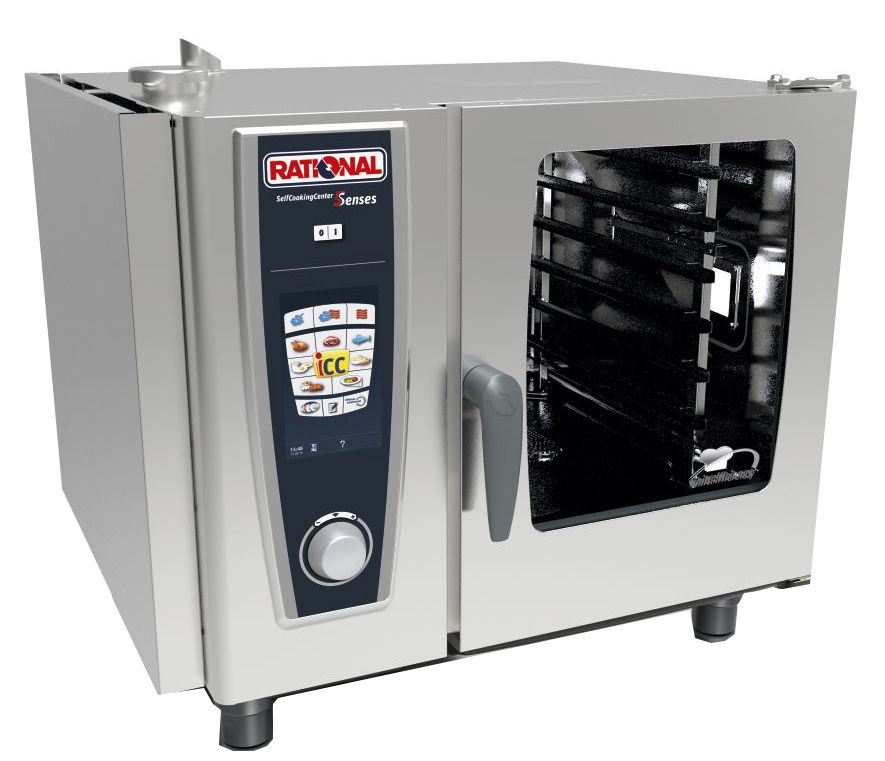 Пароконвектомат Rational SCC 61 5 Senses серии SelfCookingCenter предназначен для приготовления блюд путём жарки, тушения или варения на предприятиях общественного питания и торговли. Такое оборудование может заменить плиту, жарочный и духовой шкаф, конвекционную печь, опрокидывающуюся сковороду, пищеварочный котел и др. Модель оснащена цветным 8,5 дюймовым TFT-монитором, сенсорным экраном с самообъясняющими символами.