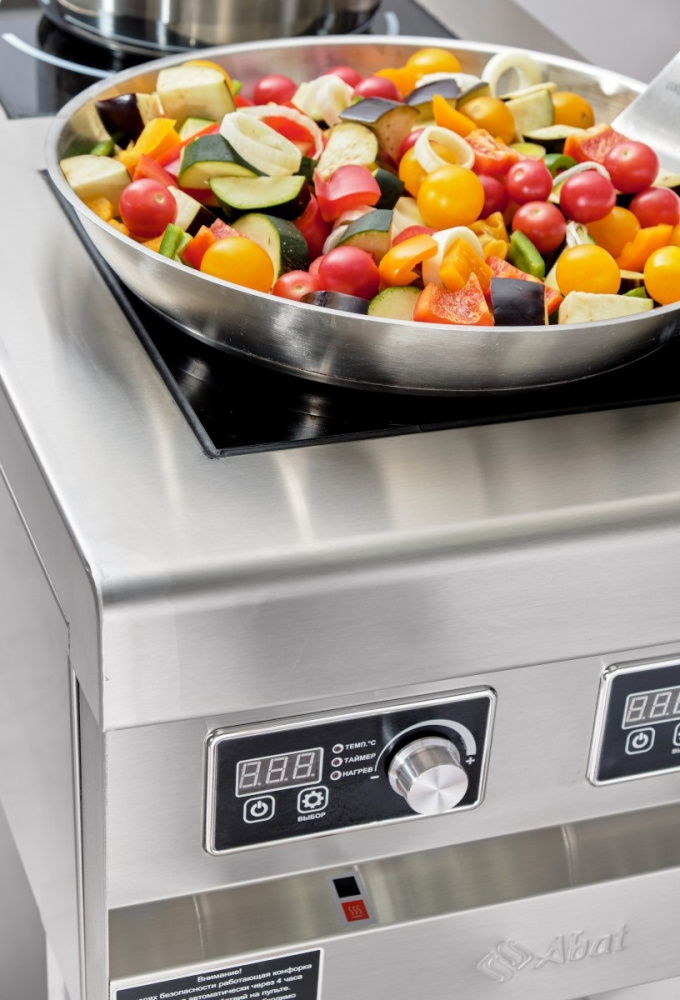 Индукционная плита Abat КИП-9П-3.5-01 используется в специализированных магазинах, на предприятиях общественного питания, пищевой промышленности и торговых точках для приготовления разнообразных блюд в специализированной посуде. Плита поддерживает установленную температуру и предоставляет свободный доступ к продукции. Модель оборудована усовершенствованной функциональностью, легким обслуживанием, упрощённой эксплуатацией и улучшенным дизайном. Может использоваться посуда из нержавеющей стали или алюминия с ферромагнитным дном, чугунная посуда. Лицевая панель выполнена из высококачественной нержавеющей стали, подставка с полкой и боковые стенки плит - из крашеного металла, рабочая поверхность - из стеклокерамики.