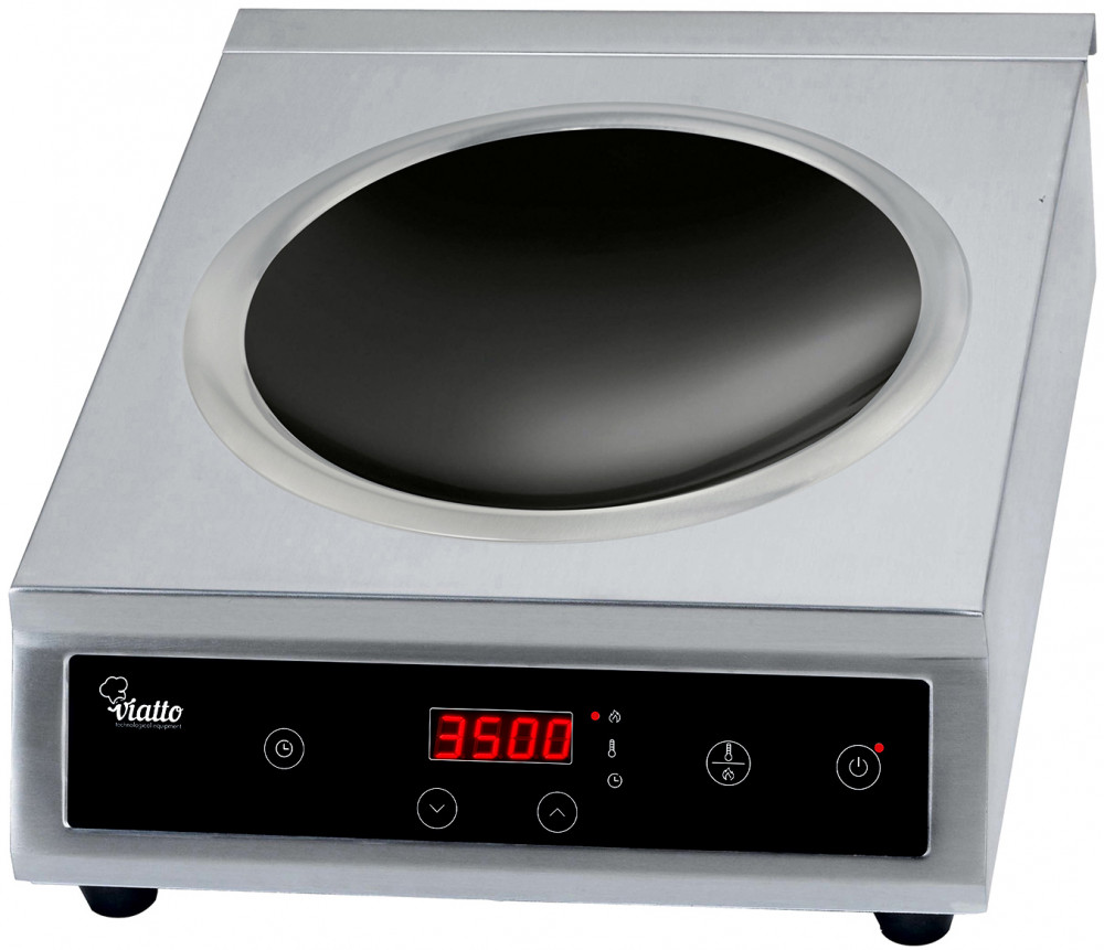 Индукционная плита VIATTO VA-350B-A WOK предназначена для приготовления широкого спектра блюд в наплитной посуде на предприятиях общественного питания и торговли. Электронная панель управления. Материал корпуса - нержавеющая сталь, материал варочной поверхности - стеклокерамика.