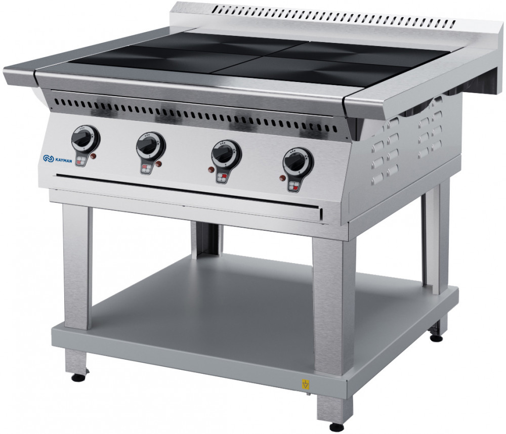 Электрическая плита KAYMAN ПЭ-4-11-МХ используется на предприятиях общественного питания, торговли и пищевых производствах для приготовления блюд в наплитной посуде. Терморегуляторы на передней панели, ножки регулируются по высоте. Материал плиты - нержавеющая сталь.