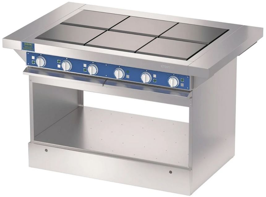 Электрическая плита ATESY ЭПЧ-9-6-18-05 используется на предприятиях общественного питания и торговли для приготовления широкого спектра блюд в наплитной посуде, а также для выпечки хлебобулочных и кондитерских изделий. Модель оснащена терморегулятором, позволяющим осуществлять контроль температуры в духовом шкафу. Материал столешницы и фасадной части - нержавеющая сталь AISI 430, материал корпуса - оцинкованная сталь, материал конфорок - чугун.