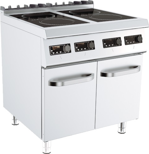Индукционная плита Kusina G7IN200E используется на предприятиях общественного питания, торговли и на пищевых производствах для приготовления широкого спектра блюд, жарки полуфабрикатов из мяса, рыбы, овощей и выпечки. Нагревается непосредственно дно посуды, а не поверхность плиты, за счет чего экономится время для приготовления пищи. Для индукционных плит используется специальная посуда с дном из ферромагнитного металла. Поверхность плиты остается холодной даже в момент приготовления пищи. Модель оборудована 2 сплошными поверхностями с 2х2 конфорками, независимыми терморегуляторами, внутренней термической защитой от перегрева, 2 распашными дверями и 4 регулируемыми по высоте ножками. Материал корпуса - нержавеющая сталь.