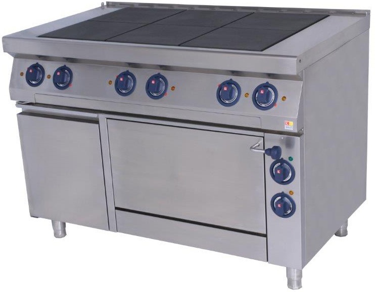 Электрическая плита Kovinastroj ESK-T69/1-0 серии 900 используется на предприятиях общественного питания и торговли для приготовления различных блюд из мяса, овощей, рыбы, выпечки мучных и кондитерских изделий. Данная модель имеет электромеханическое управление и защитный термостат. Материал конфорок - чугун, материал внутренней дверцы и ручки - высококачественная нержавеющая сталь AISI 304, материал корпуса и опор ножек - высококачественная нержавеющая сталь AISI 304.
