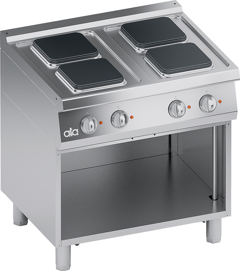 Электрическая плита ATA K7ECU10VVQ используется на предприятиях общественного питания, торговли и пищевых производствах для приготовления широкого спектра блюд в наплитной посуде. Модель оснащена температурным датчиком, шкафом для инвентаря и регулируемыми ножками. Материал корпуса и ножек - высококачественная нержавеющая сталь, материал рабочей поверхности и передней панели - нержавеющая сталь AISI 304, материал атермических ручек - пластик с трафаретной печатью по краям, материал конфорок - чугун.