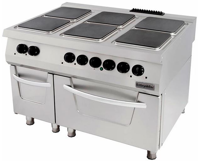 Электрическая плита OZTI OSOEF 12090 серии 900 используется на предприятиях общественного питания, торговли и пищевых производствах для приготовления различных блюд в наплитной посуде. Модель оснащена электромеханическим управлением, предохранительными выключателями, селекторным переключателем, нагревательными элементами в верхней и нижней части духового шкафа, терморегуляторами и крепкими ручками. Материал корпуса, дверцы и лицевой панели - высококачественная нержавеющая сталь, материал конфорок - чугун.