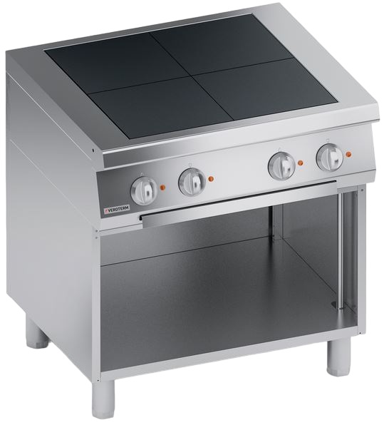 Электрическая плита Veroterm VT7RUE10VV серии 700 используется на предприятиях общественного питания, торговли и пищевых производствах для приготовления различных блюд в наплитной посуде. Модель оснащена механическим управлением, индикаторам, открытой подставкой и регуляторами температуры. Материал изделия - высококачественная нержавеющая сталь (толщина 1 мм).