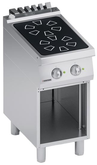 Индукционная плита Veroterm VT4CIEP05VV серии 900 используется на предприятиях общественного питания, торговли и пищевых производствах для приготовления различных блюд в наплитной посуде. Модель оснащена механическим управлением, индикаторам, подставкой и регуляторами температуры. Материал изделия - высококачественная нержавеющая сталь AISI 430 (толщина 1 мм), материал конфорок - Швейцарская стеклокерамика (толщина 6 мм).