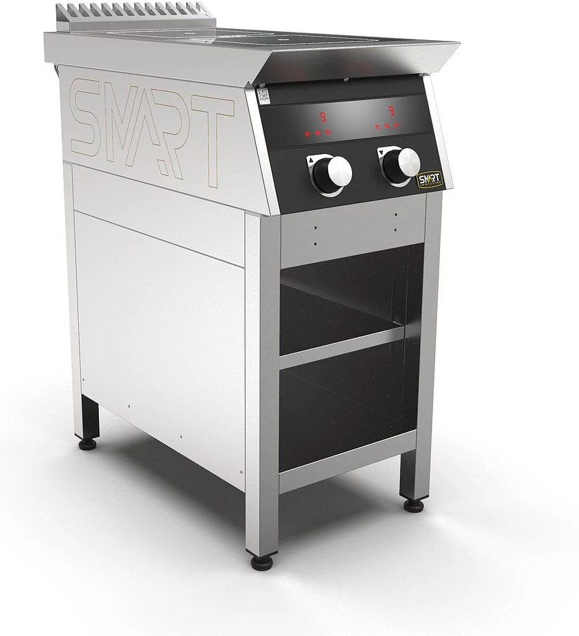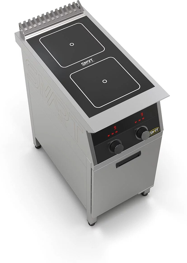 Индукционная плита SMART INDUCTION C92-3B 220В серии 900 используется на предприятиях общественного питания, торговли и пищевых производствах для приготовления и разогрева различных видов блюд в специализированной посуде. Модель оснащена электро-механическим управлением, индикаторами, жировым фильтром съемным и регулируемыми ножками. Материал корпуса, столешницы и воздуховода - высококачественная нержавеющая сталь AISI 430, материал рабочей поверхности - стеклокерамика, материал передней панели - стойкое полимерное покрытие черного цвета.