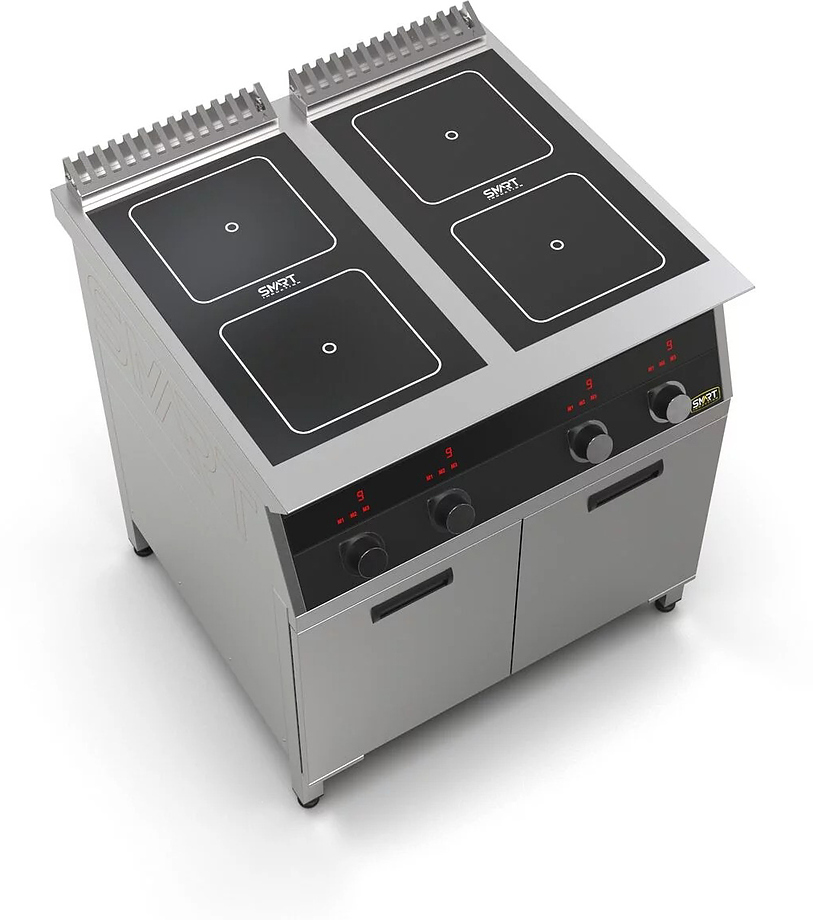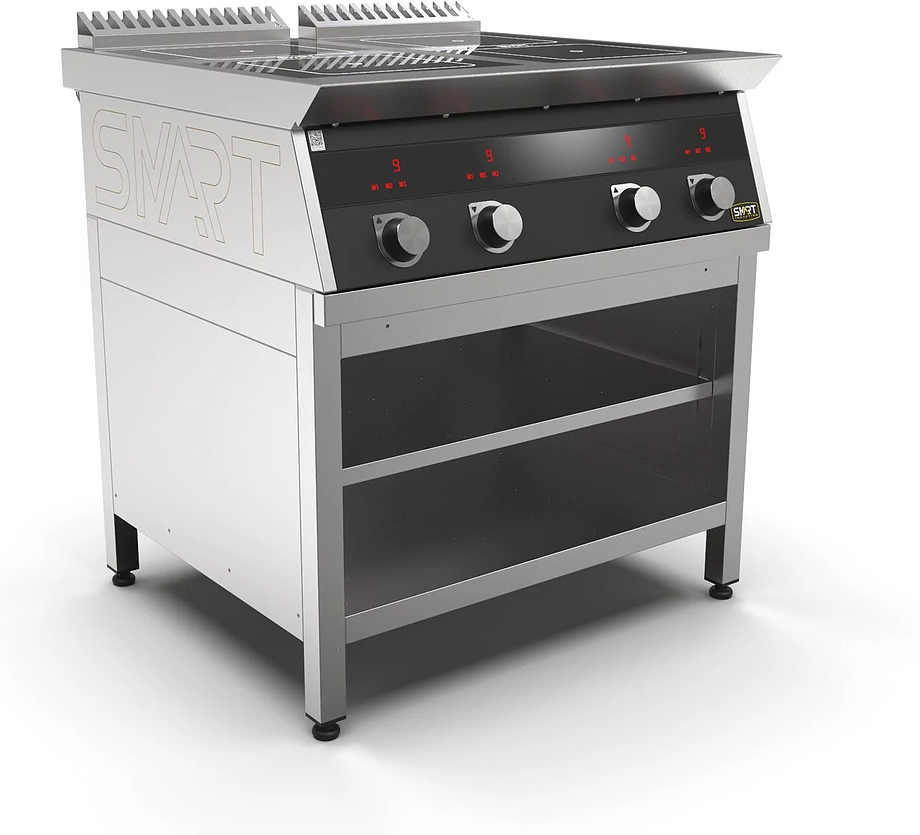 Индукционная плита SMART INDUCTION C94-3B серии 900 используется на предприятиях общественного питания, торговли и пищевых производствах для приготовления и разогрева различных видов блюд в специализированной посуде. Модель оснащена электро-механическим управлением, индикаторами, жировым фильтром съемным и регулируемыми ножками. Материал корпуса, столешницы и воздуховода - высококачественная нержавеющая сталь AISI 430, материал рабочей поверхности - стеклокерамика, материал передней панели - стойкое полимерное покрытие черного цвета.