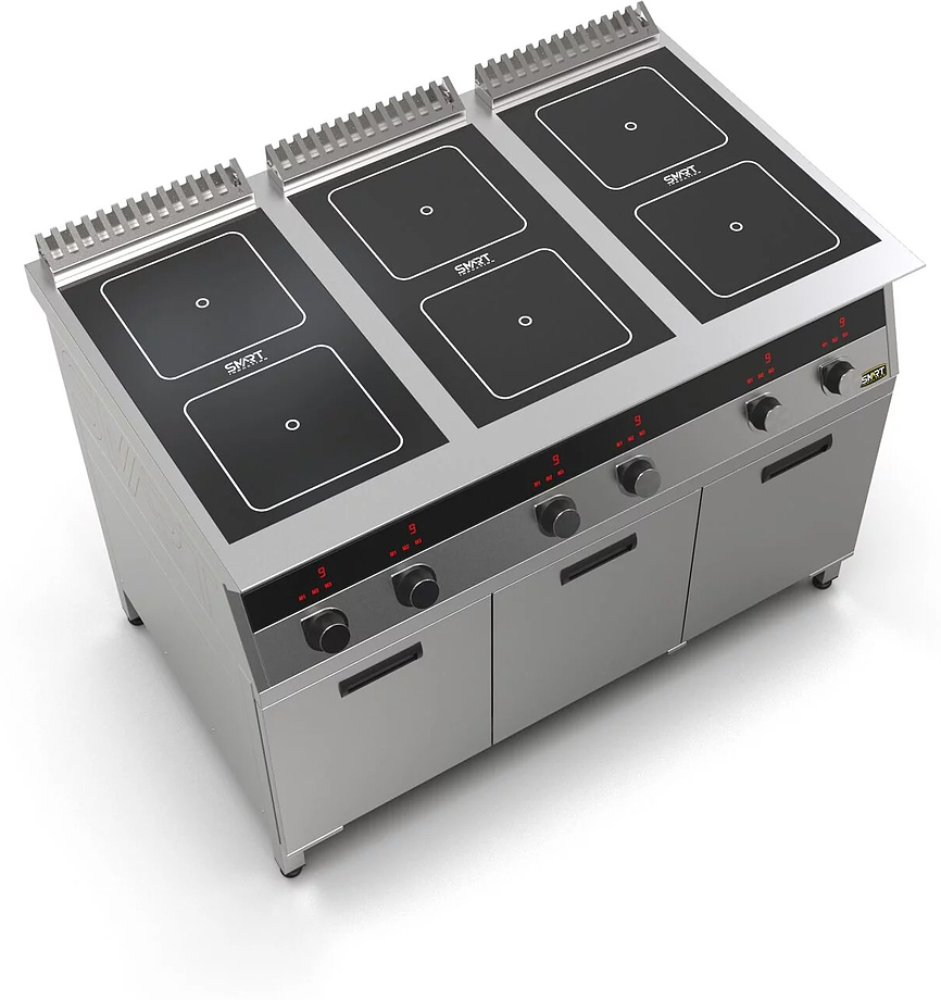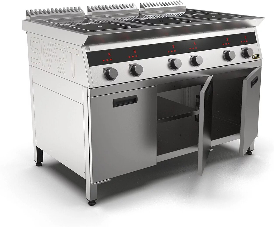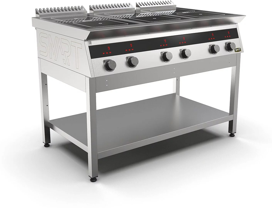 Индукционная плита SMART INDUCTION C96-3N серии 700 используется на предприятиях общественного питания, торговли и пищевых производствах для приготовления и разогрева различных видов блюд в специализированной посуде. Модель оснащена электро-механическим управлением, индикаторами, жировым фильтром съемным и регулируемыми ножками. Материал корпуса, столешницы и воздуховода - высококачественная нержавеющая сталь AISI 430, материал рабочей поверхности - стеклокерамика, материал передней панели - нержавеющая сталь.