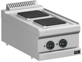 Электрическая плита Apach APRE-47T/PL 700-й серии предназначена для приготовления различных блюд из мяса, птицы, рыбы и овощей в наплитной посуде на предприятиях общественного питания и торговли. Модель оснащена электромеханической панелью управления, быстро нагревающимися конфорками и гидроизолированной прессованной поверхностью. Корпус, рабочая поверхность, панель управления и вытяжная решетка выполнены из нержавеющей стали AISI 304, боковые и задняя панели - из нержавеющей стали AISI 430.