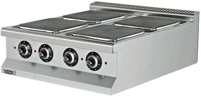 Плита электрическая Empero EMP.9KE020-P-2016 предназначается для приготовления блюд широкого спектра в наплитной посуде на предприятиях общественного питания, торговли и пищевых производствах. Плита оснащена механическим управлением и 4 терморегуляторами. Материал корпуса - нержавеющая сталь.