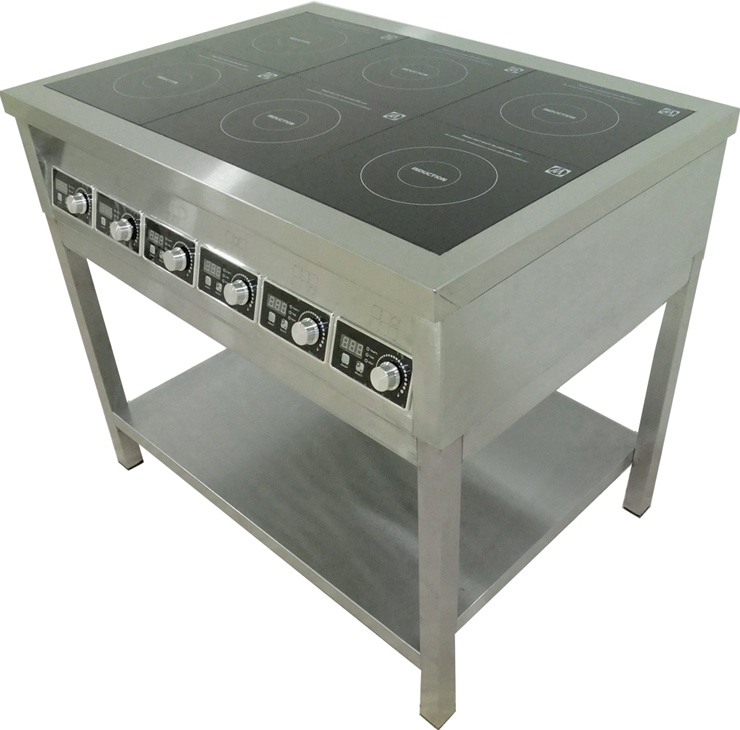 Индукционная плита ЦМИ ПИ-6/700 используется в составе тепловой линии 700 на предприятиях общественного питания и торговли для приготовления первых, вторых и третьих блюд в наплитной посуде. Модель оснащена датчиками, отключающими плиту, если посуда пустая или отсутствует на конфорках. Корпус и разборная подставка выполнены из нержавеющей стали.