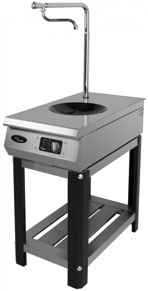 Электрическая плита Grill Master Ф1ИП/800 используется на предприятиях общественного питания, торговли и пищевых производствах для разогрева и приготовления различных видов блюд в WOK сковороде. Модель оснащена сенсорным управлением, ЖК-дисплеем, механическими переключателями, краном для залива и открытой подставкой с полкой. Материал корпуса и подставки - высококачественная нержавеющая сталь, материал рабочей поверхности - стеклокерамика (толщина 6 мм).