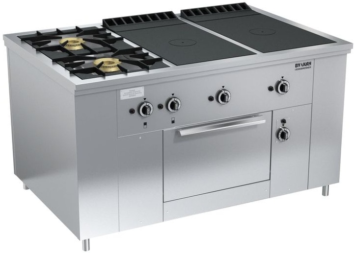 Газовая плита Вулкан ПРГ-IIА-6-2 ДШ Maxi используется для приготовления широкого спектра блюд в наплитной посуде и выпечки хлебобулочных и кондитерских изделий на предприятиях общественного питания, торговли и пищевых производствах. Модель оснащена 2 секционными и 2 сплошными горелками, 1 духовым шкафом, газ-контролем, пьезорозжигом, запальной горелкой и регулируемыми ножками. Материал корпуса - высококачественная нержавеющая сталь, материал решеток и конфорок - чугун.