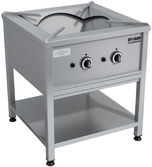 Газовая плита-табурет Вулкан GK 2102 8202 предназначена для приготовления различных блюд в казане на предприятиях общественного питания и торговли. Модель оснащена газ-контролем, пьезорозжигом, запальной горелкой, поддоном для сбора мусора и сплошной полкой для инвентаря. Материал корпуса - высококачественная нержавеющая сталь.