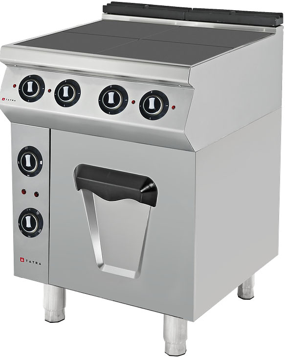 Плита электрическая TATRA TER.89O серии 900 предназначена для приготовления широкого спектра блюд на предприятиях общественного питания, торговли пищевых производствах. Модель оснащена механическим управлением, электрическим духовым шкафом, световыми индикаторами, поддоном для сбора жидкости и регулируемыми ножками. Материал корпуса - высококачественная нержавеющая сталь, материал конфорок - чугун.