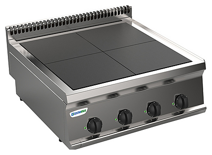 Электрическая плита Tecnoinox PCU70E7 предназначена для приготовления первых, вторых, третьих блюд в наплитной посуде на предприятиях общественного питания и торговли. Модель оснащена независимым термостатом для каждой конфорки под сплошной поверхностью. Корпус изготовлен из нержавеющей стали AISI 304. Оборудование может быть расположено на подставке у стены или как центральный остров.