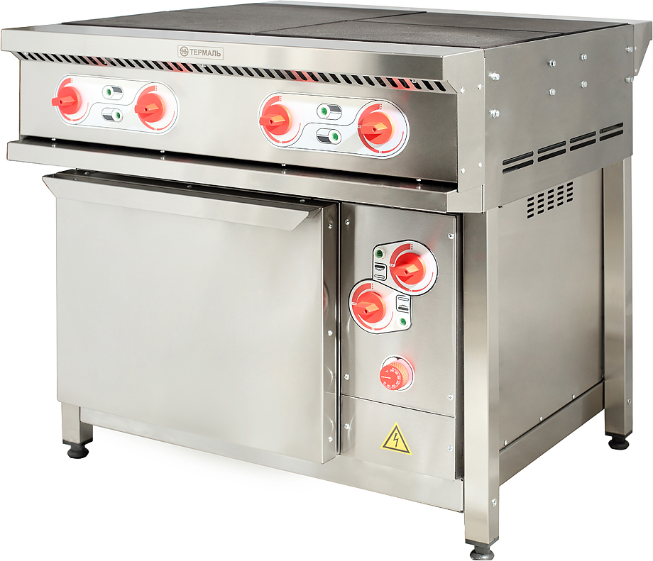 Плита электрическая Термаль ПЭ-4 ЖШ предназначена для приготовления широкого спектра блюд в наплитной посуде, выпечки пиццы, пирогов, кексов и др. на предприятиях общественного питания и торговли. Контактные части и коммутационные провода защищены от попадания жидкости, благодаря чему обспечивается устойчивость к влажности. Прямоугольные легкосъемные цельнолитые конфорки гарантируют равномерный нагрев, в них также залиты ТЭНы, что предохраняет их от контакта с воздухом и, как следствие этого, от окисления.
