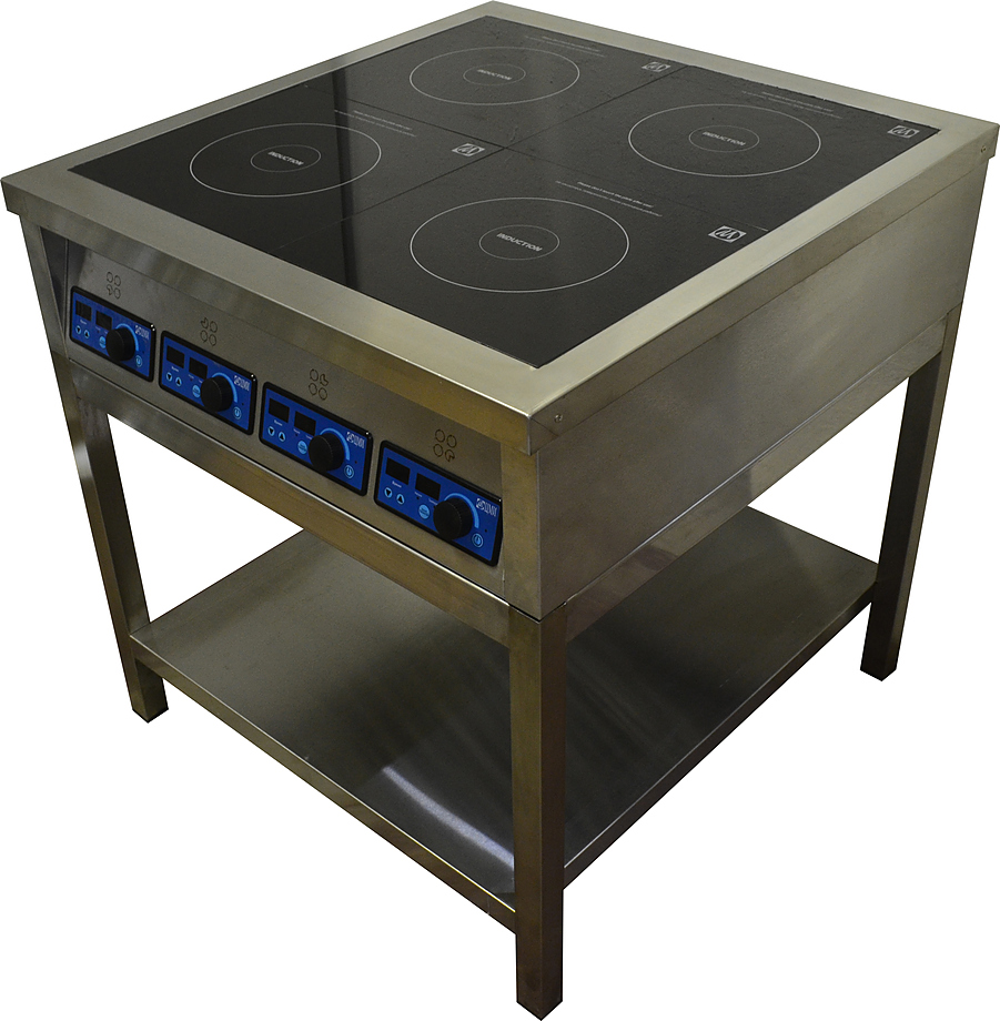 Индукционная плита ЦМИ ПИ-4 предназначена для приготовления различных блюд в наплитной посуде на предприятиях общественного питания и торговли. Нагрев рабочей поверхности осуществляется моментально, вследствие чего затрачивается меньшее количество электроэнергии. Корпус выполнен из нержавеющей стали, сплошная полка - из нержавеющего листа AISI 430 толщиной 0,8 мм, ножки каркаса - из нержавеющей трубы 40х40х1,5 AISI 430.