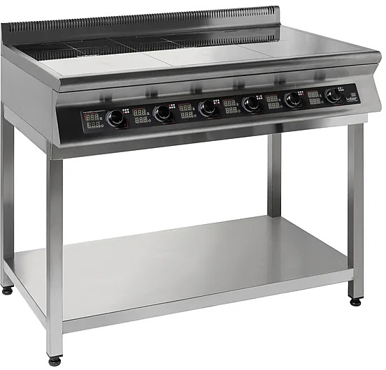 Индукционная плита Кобор I9-6S серии 900 приготовления различных блюд в наплитной посуде на предприятиях общественного питания и торговли. Нагрев поверхности осуществляется почти мгновенно, а выделяемое тепло генерируется только на посуде, сама же плита нагревается незначительно, что позволяет избежать ожогов и потери тепла. Корпус выполнен из нержавеющей стали AISI 304, варочная панель - из монолитной высокопрочной стеклокерамики.