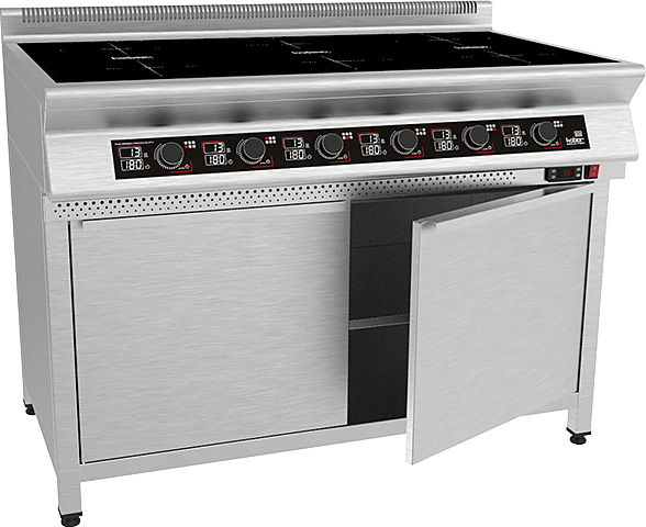 Индукционная плита Кобор I9-6S2 серии 900 предназначена для приготовления различных блюд в наплитной посуде на предприятиях общественного питания и торговли. Нагрев поверхности осуществляется почти мгновенно, а выделяемое тепло генерируется только на посуде, сама же плита нагревается незначительно, что позволяет избежать ожогов и потери тепла. Корпус выполнен из нержавеющей стали AISI 304, варочная панель - из монолитной высокопрочной стеклокерамики.