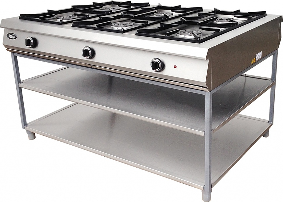 Газовая плита Grill Master Ф6П2Г/1000​ предназначена для приготовления различных блюд в наплитной посуде на предприятиях общественного питания и торговли. Модель имеет подход для поваров с двух сторон, снабжена увеличенными решетками для большой наплитной посуды.