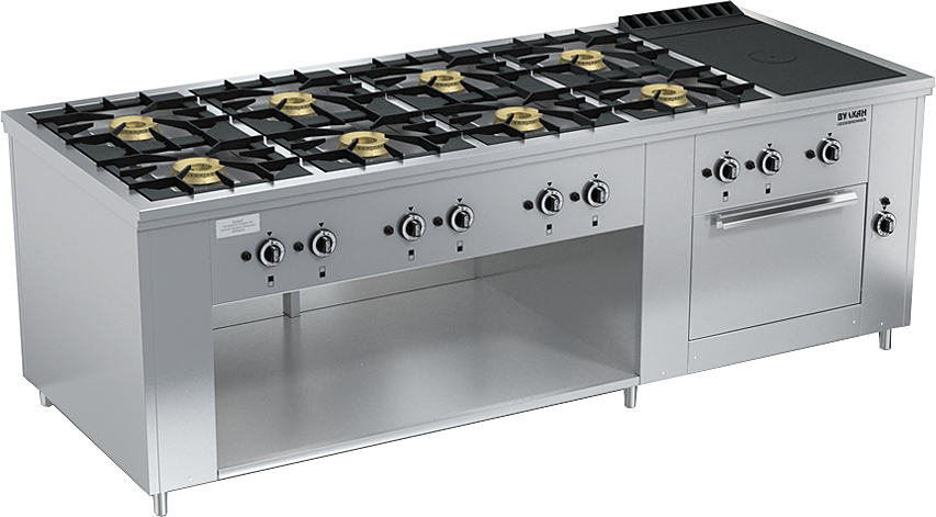 Газовая плита Вулкан ПРГ-IIA-10-1 ДШ Maxi предназначена для приготовления первых, вторых и третьих блюд в наплитной посуде, выпечки хлебобулочных и кондитерских изделий на предприятиях общественного питания и торговли. Модель оснащена газ-контролем, пьезорозжигом и запальной горелкой. Корпус выполнен из нержавеющей стали.