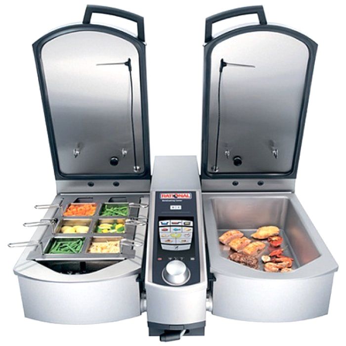 Многофункциональная сковорода Rational VCC 112T V125100.01 предназначена для варки, жарки и обжаривания во фритюре мяса, рыбы, овощей и гарниров, блюд из яиц, супов и соусов, молочных блюд и десертов на предприятиях общественного питания. Модель оснащена цветным 8,5 дюймовым TFT-монитором, сенсорным экраном и центральным регулятором с функцией Push для подтверждения ввода данных.