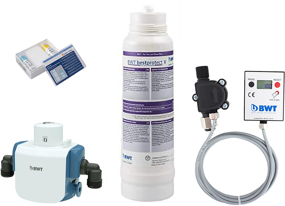 Стартовый комплект фильтр-системы BWT Bestprotect V предназначается для фильтрации воды, используемой в бойлерах, кофемашинах, льдогенераторах, пароконвектоматах, посудомоечных машинах и прочем оборудовании. Система многоступенчатой очистки удаляет всех примеси и гарантирует высокое качество воды.